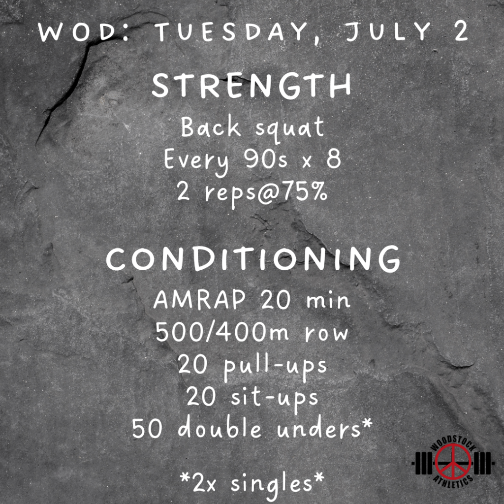 WOD & Barbell Club: Tuesday, July 2 Posted bySteph VermeychukJuly 2, 2024June 30, 2024Posted inWorkout of the Day Share this: Click to share on X (Opens in new window) X Click to share on Facebook (Opens in new window) Facebook Like Loading... Related