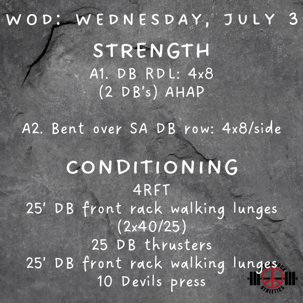 WOD: Wednesday, July 3 Posted bySteph VermeychukJuly 3, 2024June 30, 2024Posted inWorkout of the Day Share this: Click to share on X (Opens in new window) X Click to share on Facebook (Opens in new window) Facebook Like Loading... Related
