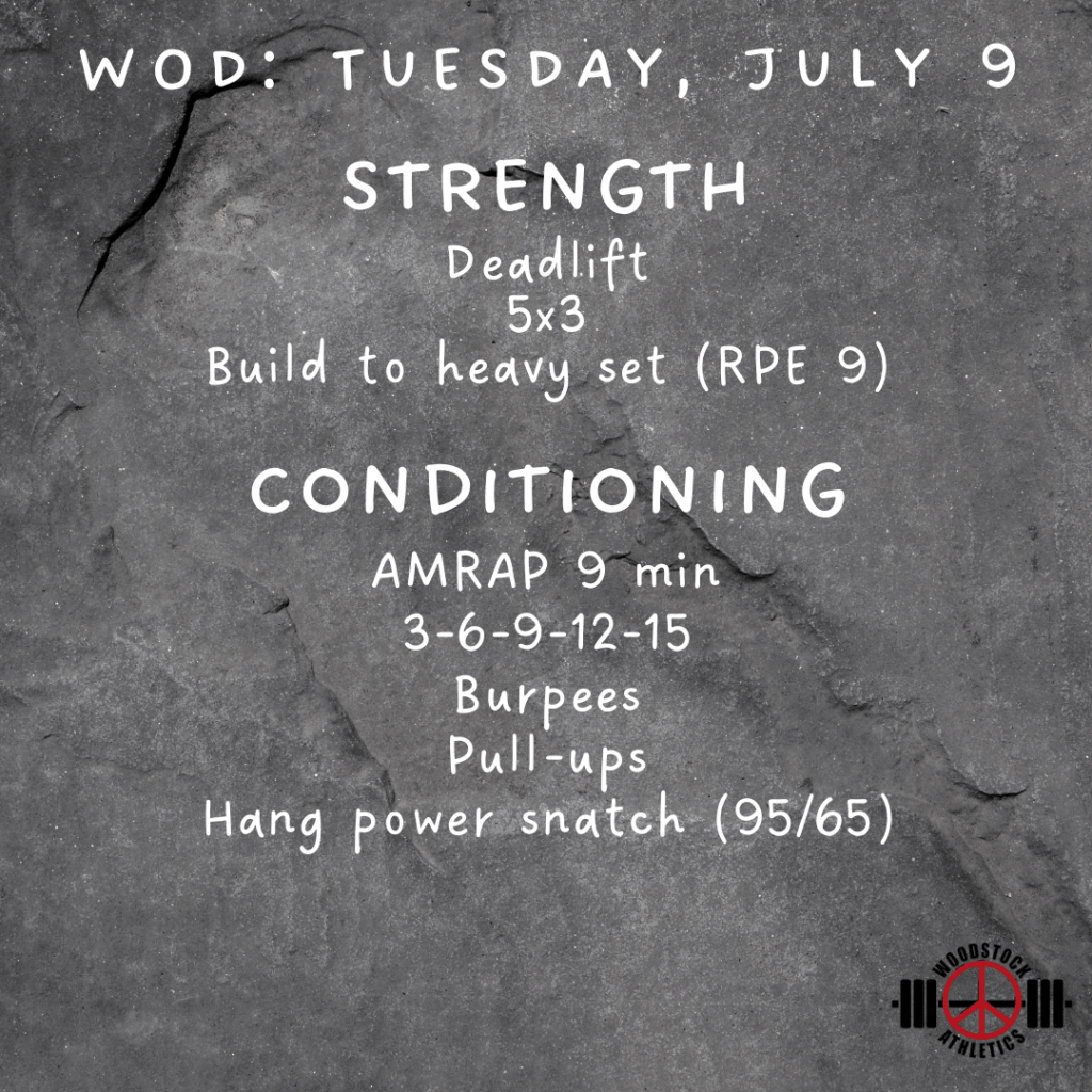 WOD & Barbell Club: Tuesday, July 9 Posted bySteph VermeychukJuly 9, 2024July 7, 2024Posted inWorkout of the Day Share this: Click to share on X (Opens in new window) X Click to share on Facebook (Opens in new window) Facebook Like Loading... Related