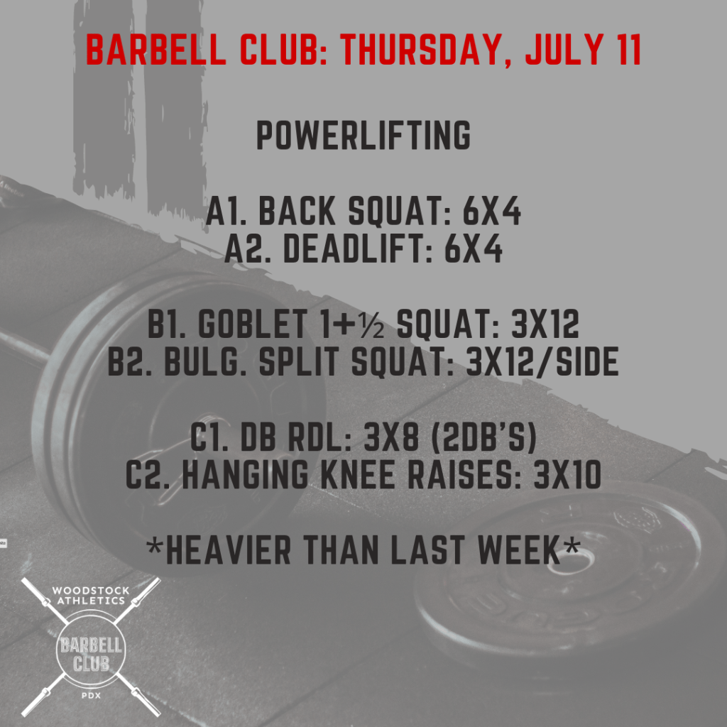 WOD & Barbell Club: Thursday, July 11 Posted bySteph VermeychukJuly 11, 2024July 7, 2024Posted inWorkout of the Day Share this: Click to share on X (Opens in new window) X Click to share on Facebook (Opens in new window) Facebook Like Loading... Related