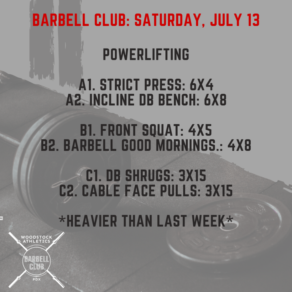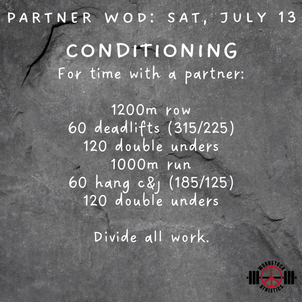 Partner WOD & Barbell Club: Saturday, July 13 Posted bySteph VermeychukJuly 13, 2024July 7, 2024Posted inWorkout of the Day Share this: Click to share on X (Opens in new window) X Click to share on Facebook (Opens in new window) Facebook Like Loading... Related