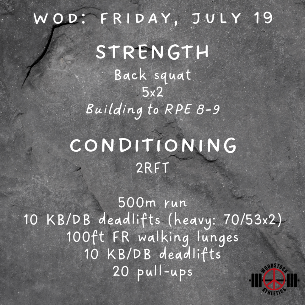 WOD: Friday, July 19 Posted bySteph VermeychukJuly 19, 2024July 14, 2024Posted inWorkout of the Day Share this: Click to share on X (Opens in new window) X Click to share on Facebook (Opens in new window) Facebook Like Loading... Related