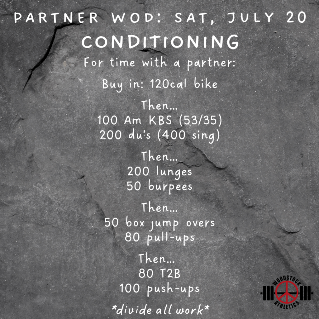 Partner WOD & Barbell Club: Saturday, July 20 Posted bySteph VermeychukJuly 20, 2024July 14, 2024Posted inWorkout of the Day Share this: Click to share on X (Opens in new window) X Click to share on Facebook (Opens in new window) Facebook Like Loading... Related