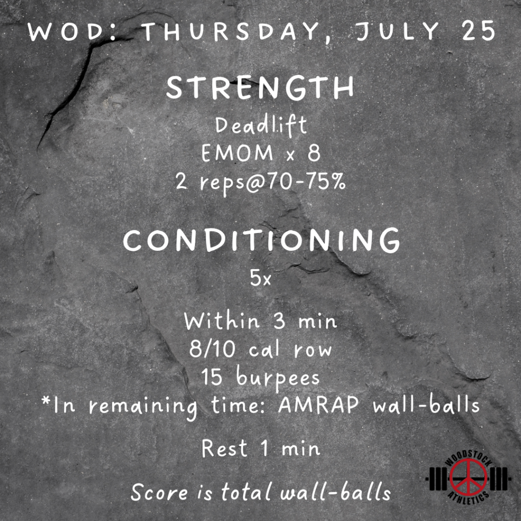 WOD & Barbell Club: Thursday, July 25 Posted bySteph VermeychukJuly 25, 2024July 21, 2024Posted inWorkout of the Day Share this: Click to share on X (Opens in new window) X Click to share on Facebook (Opens in new window) Facebook Like Loading... Related
