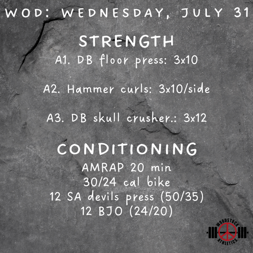 WOD: Wednesday, July 31 Posted bySteph VermeychukJuly 31, 2024July 28, 2024Posted inWorkout of the Day Share this: Click to share on X (Opens in new window) X Click to share on Facebook (Opens in new window) Facebook Like Loading... Related