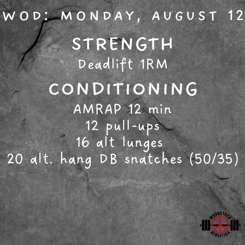 WOD: Monday, August 12 Posted bySteph VermeychukAugust 12, 2024August 11, 2024Posted inWorkout of the Day Share this: Click to share on X (Opens in new window) X Click to share on Facebook (Opens in new window) Facebook Like Loading... Related