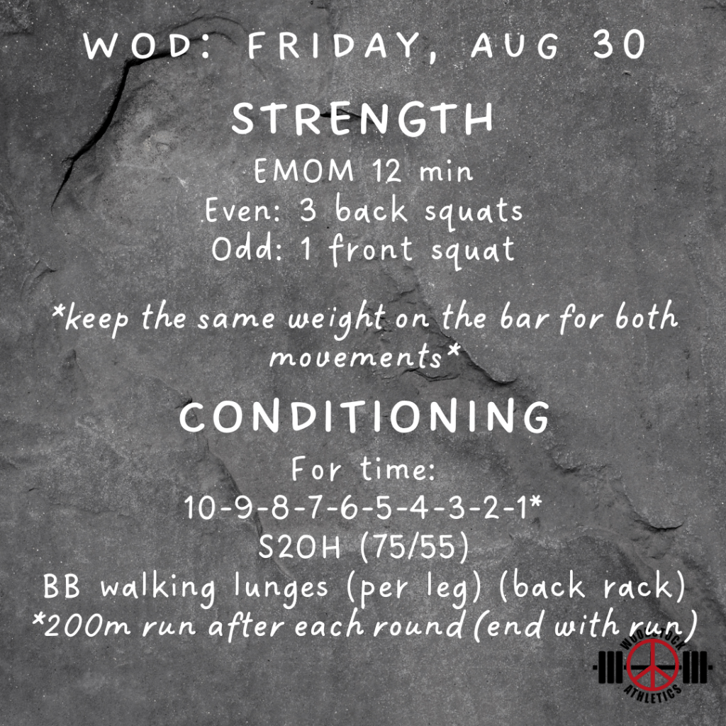 WOD: Friday, August 30 Posted bySteph VermeychukAugust 30, 2024August 25, 2024Posted inWorkout of the Day Share this: Click to share on X (Opens in new window) X Click to share on Facebook (Opens in new window) Facebook Like Loading... Related