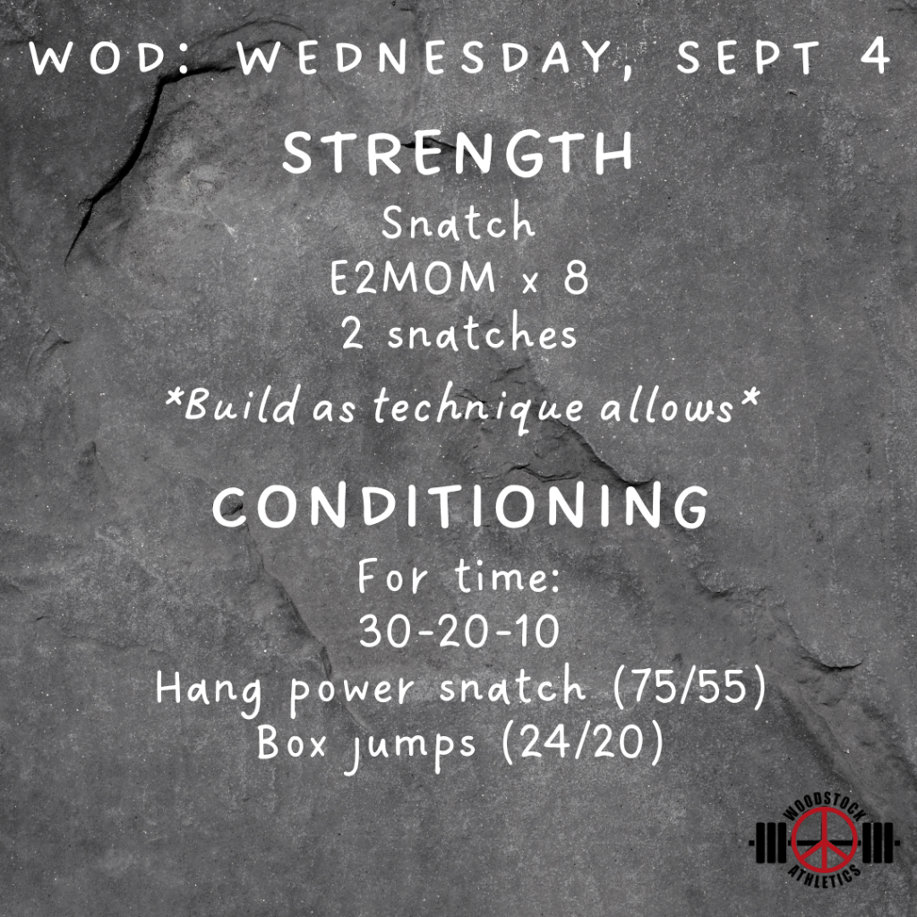 WOD: Wednesday, September 4 Posted bySteph VermeychukSeptember 4, 2024September 1, 2024Posted inWorkout of the Day Share this: Click to share on X (Opens in new window) X Click to share on Facebook (Opens in new window) Facebook Like Loading... Related