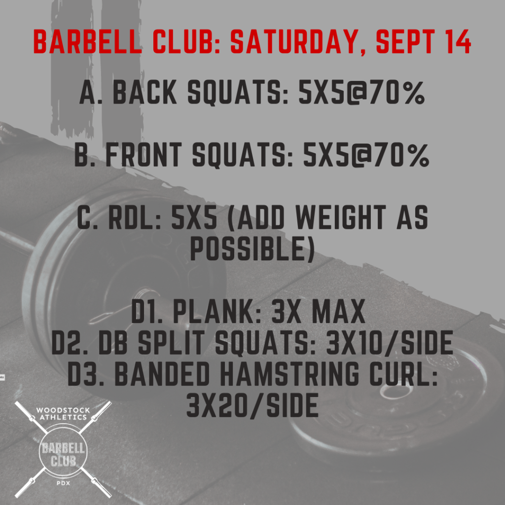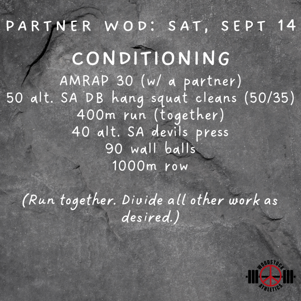 WOD & Barbell Club: Saturday, Sept 14 Posted bySteph VermeychukSeptember 14, 2024September 8, 2024Posted inWorkout of the Day Share this: Click to share on X (Opens in new window) X Click to share on Facebook (Opens in new window) Facebook Like Loading... Related