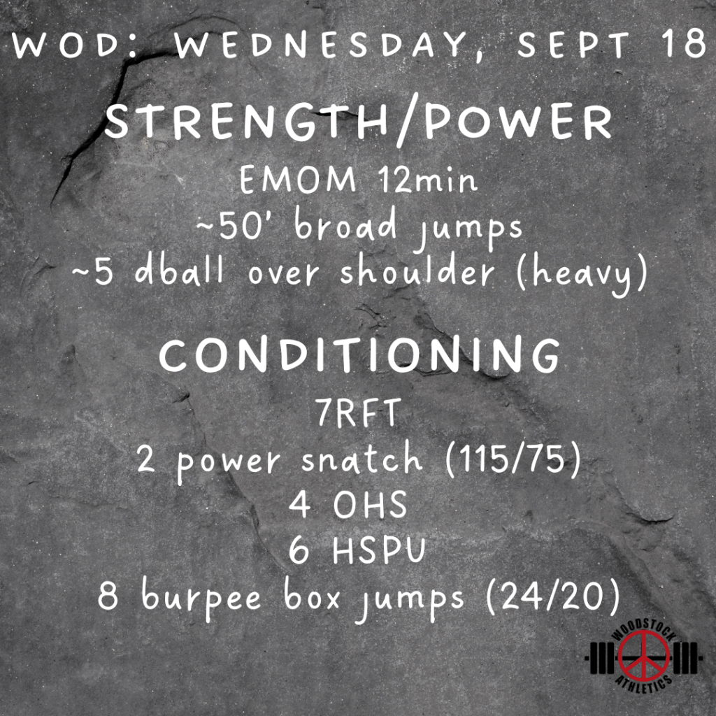 WOD: Wednesday, September 18 Posted bySteph VermeychukSeptember 18, 2024September 14, 2024Posted inWorkout of the Day Share this: Click to share on X (Opens in new window) X Click to share on Facebook (Opens in new window) Facebook Like Loading... Related
