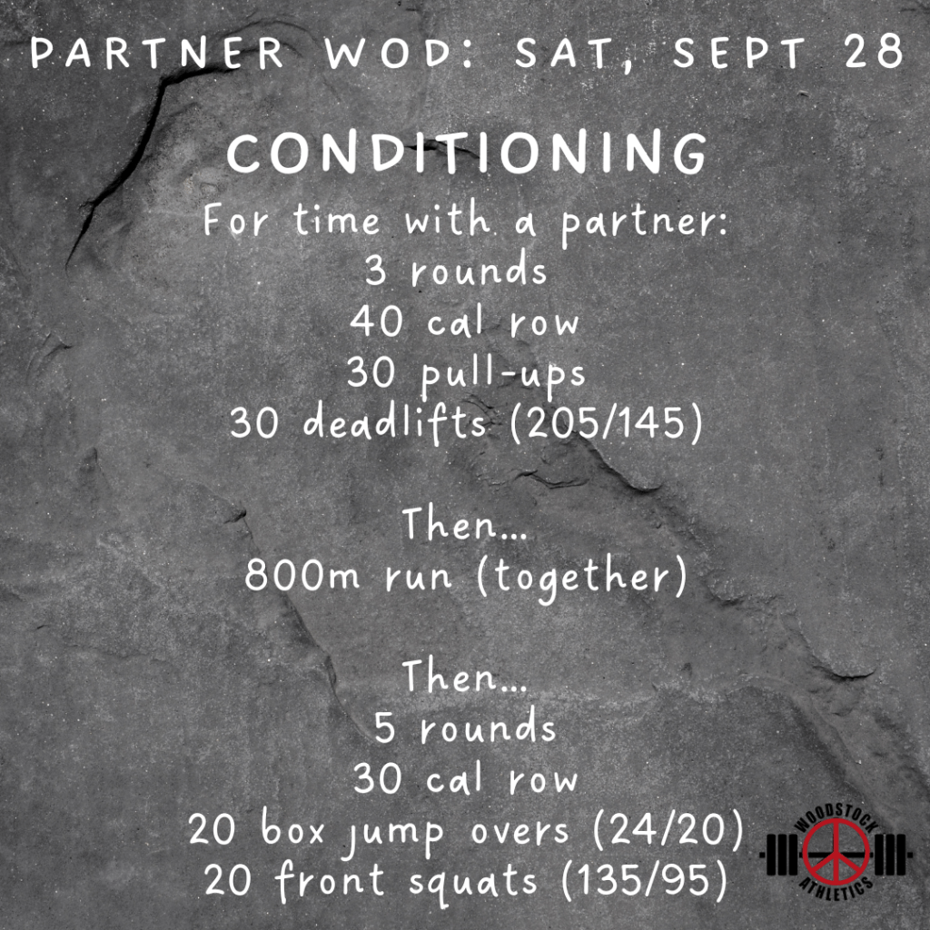 Partner WOD & Barbell Club: Sat, Sept 28 Posted bySteph VermeychukSeptember 28, 2024September 22, 2024Posted inWorkout of the Day Share this: Click to share on X (Opens in new window) X Click to share on Facebook (Opens in new window) Facebook Like Loading... Related