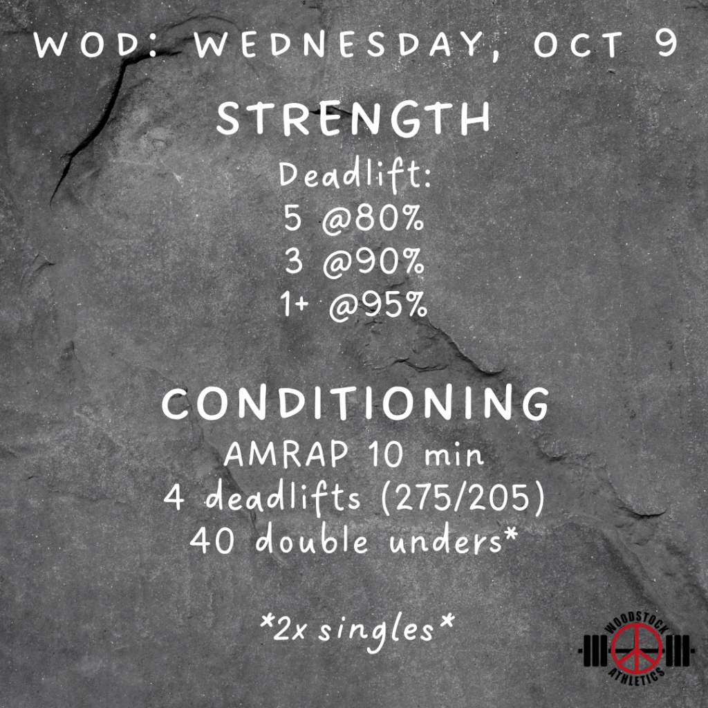 WOD: Wednesday, October 9 Posted bySteph VermeychukOctober 9, 2024October 6, 2024Posted inWorkout of the Day Share this: Click to share on X (Opens in new window) X Click to share on Facebook (Opens in new window) Facebook Like Loading... Related