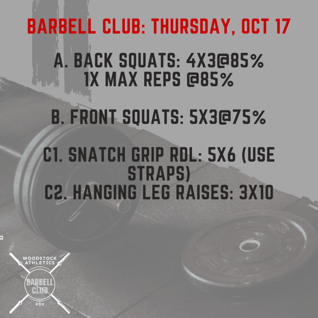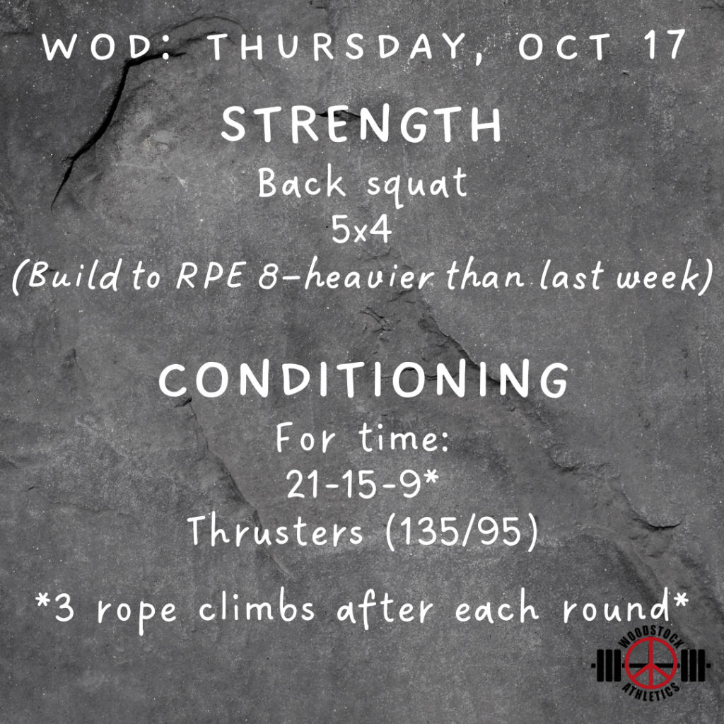 WOD & Barbell Club: Thursday, Oct 17 Posted bySteph VermeychukOctober 17, 2024October 13, 2024Posted inWorkout of the Day Share this: Click to share on X (Opens in new window) X Click to share on Facebook (Opens in new window) Facebook Like Loading... Related