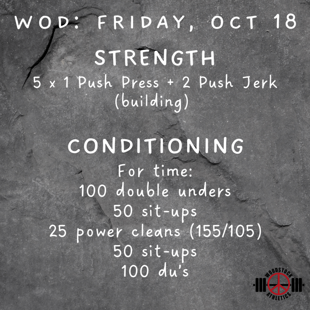 WOD: Friday, October 18 Posted bySteph VermeychukOctober 18, 2024October 13, 2024Posted inWorkout of the Day Share this: Click to share on X (Opens in new window) X Click to share on Facebook (Opens in new window) Facebook Like Loading... Related