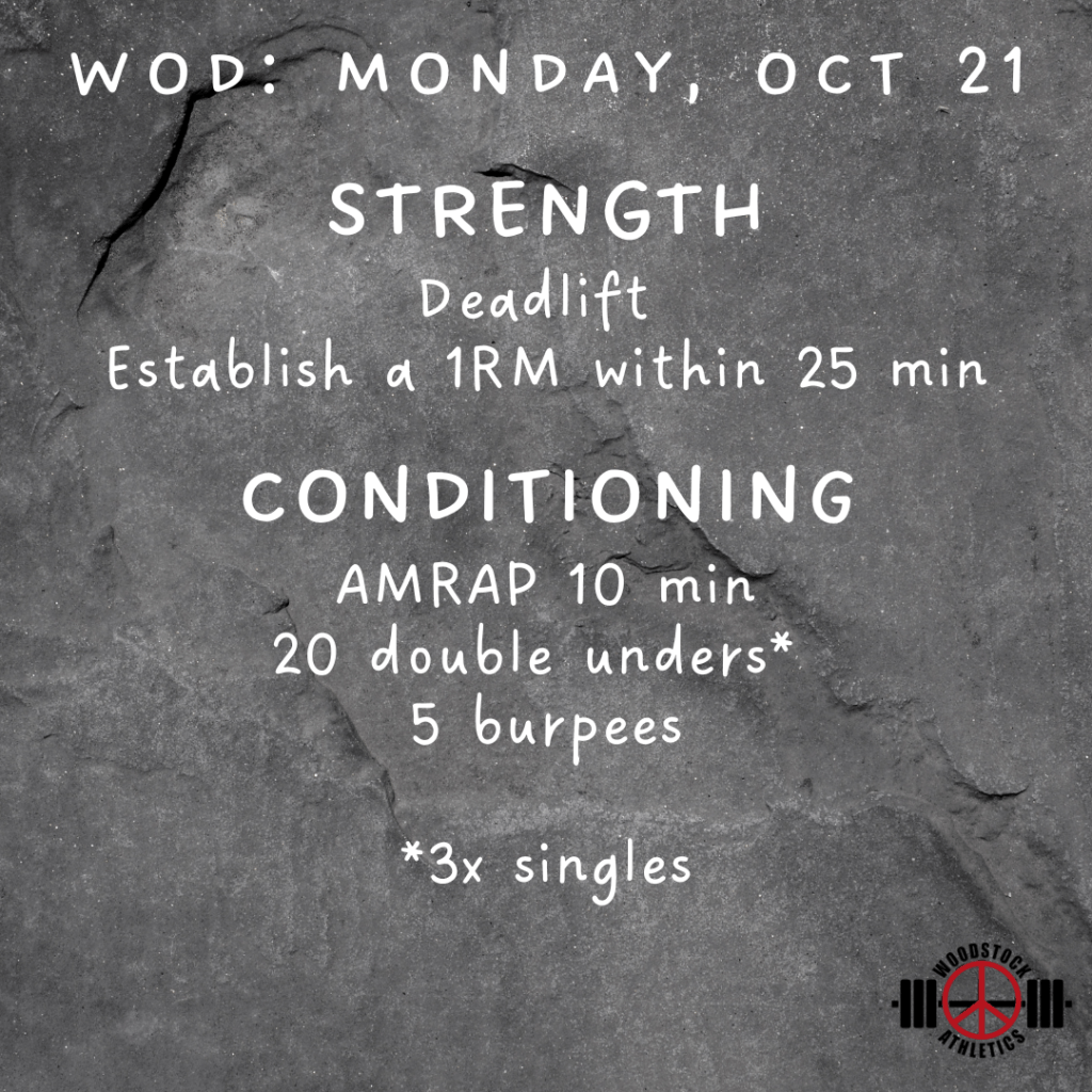 WOD: Monday, October 21 Posted bySteph VermeychukOctober 21, 2024October 19, 2024Posted inWorkout of the Day Share this: Click to share on X (Opens in new window) X Click to share on Facebook (Opens in new window) Facebook Like Loading... Related