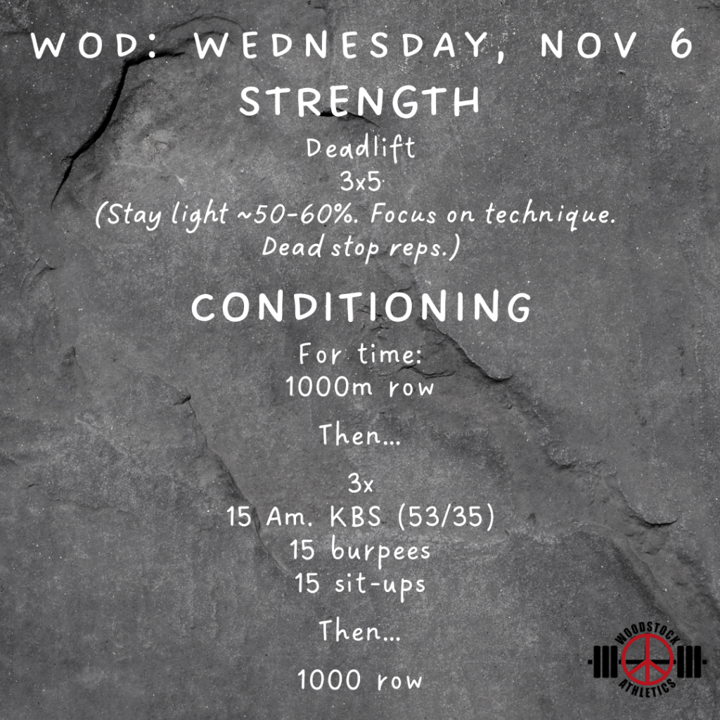WOD: Wednesday, November 6 Posted bySteph VermeychukNovember 6, 2024November 3, 2024Posted inWorkout of the Day Share this: Click to share on X (Opens in new window) X Click to share on Facebook (Opens in new window) Facebook Like Loading... Related