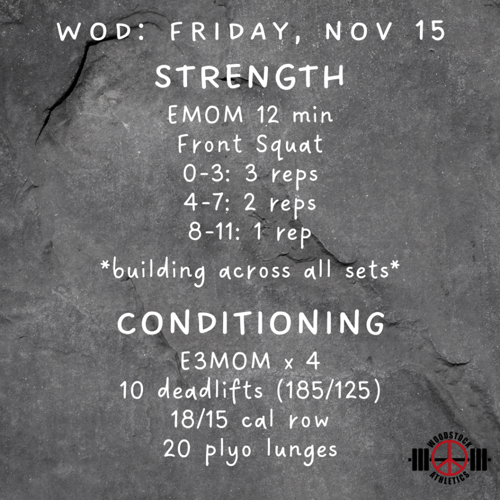 WOD: Friday, November 15 Posted bySteph VermeychukNovember 15, 2024November 10, 2024Posted inWorkout of the Day Share this: Click to share on X (Opens in new window) X Click to share on Facebook (Opens in new window) Facebook Like Loading... Related