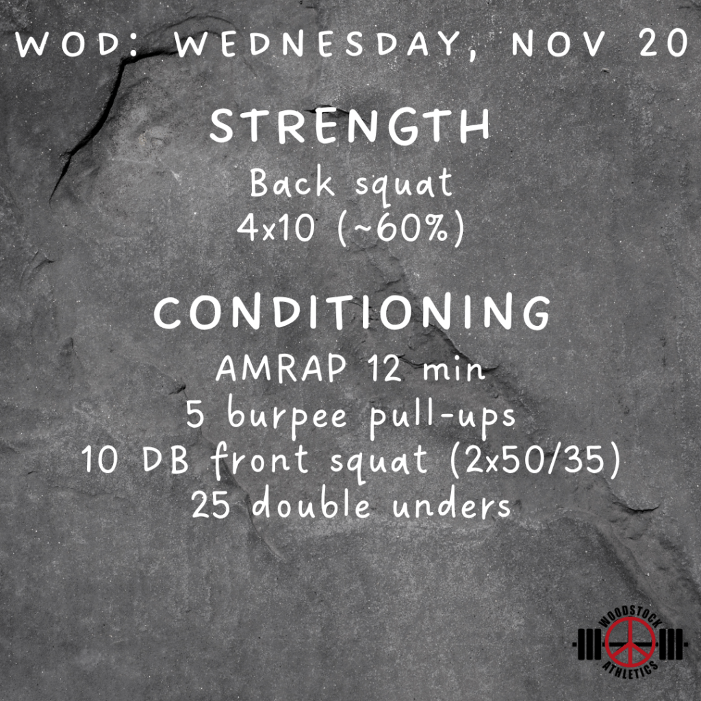 WOD: Wednesday, Nov 20 Posted bySteph VermeychukNovember 20, 2024November 17, 2024Posted inWorkout of the Day Share this: Click to share on X (Opens in new window) X Click to share on Facebook (Opens in new window) Facebook Like Loading... Related