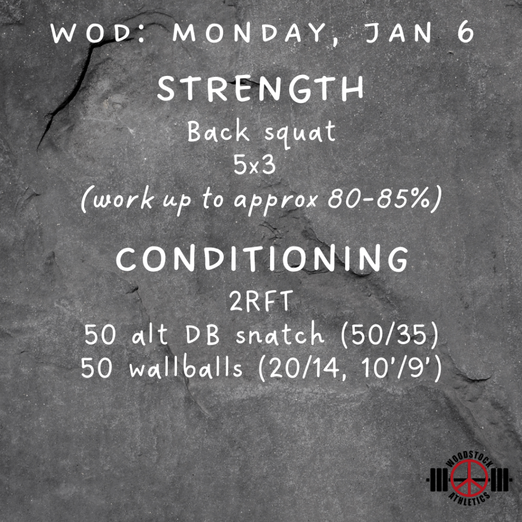 WOD: Monday, January 6 Posted bySteph VermeychukJanuary 6, 2025January 5, 2025Posted inWorkout of the Day Share this: Click to share on X (Opens in new window) X Click to share on Facebook (Opens in new window) Facebook Like Loading... Related