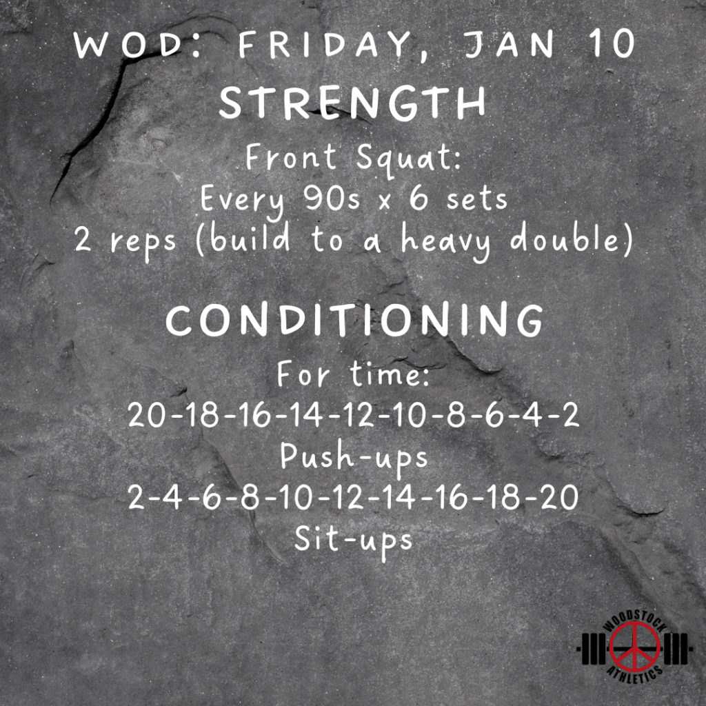 WOD: Friday, January 10 Posted bySteph VermeychukJanuary 10, 2025January 5, 2025Posted inWorkout of the Day Share this: Click to share on X (Opens in new window) X Click to share on Facebook (Opens in new window) Facebook Like Loading... Related