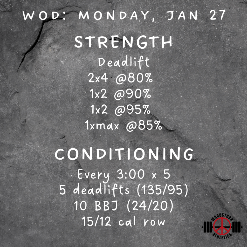 WOD: Monday, January 27 Posted bySteph VermeychukJanuary 27, 2025January 26, 2025Posted inWorkout of the Day Share this: Click to share on X (Opens in new window) X Click to share on Facebook (Opens in new window) Facebook Like Loading... Related