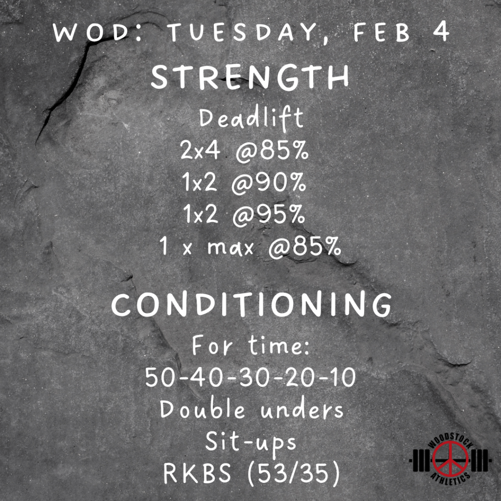 We’ve also switched things up a bit and moved our last heavy deadlifts to today. You’ll have deadlifts programmed again, but they will be lighter.