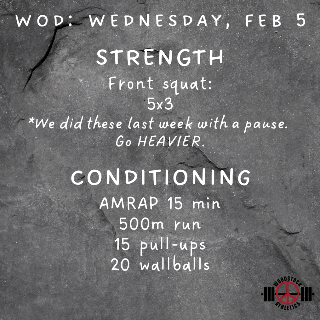 WOD: Wednesday, February 5 Posted bySteph VermeychukFebruary 5, 2025February 2, 2025Posted inWorkout of the Day Share this: Click to share on X (Opens in new window) X Click to share on Facebook (Opens in new window) Facebook Like Loading... Related