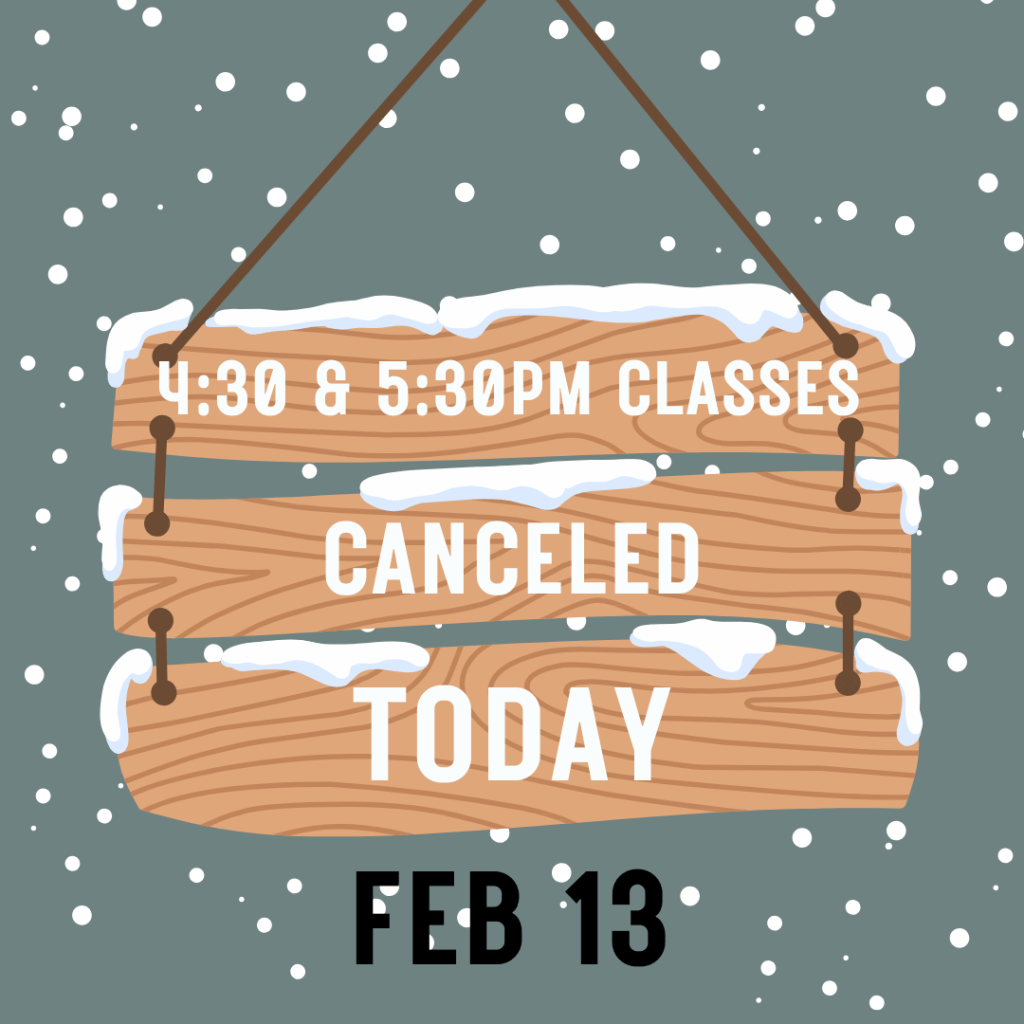 We are going to cancel the 4:30 & 5:30pm classes this afternoon.