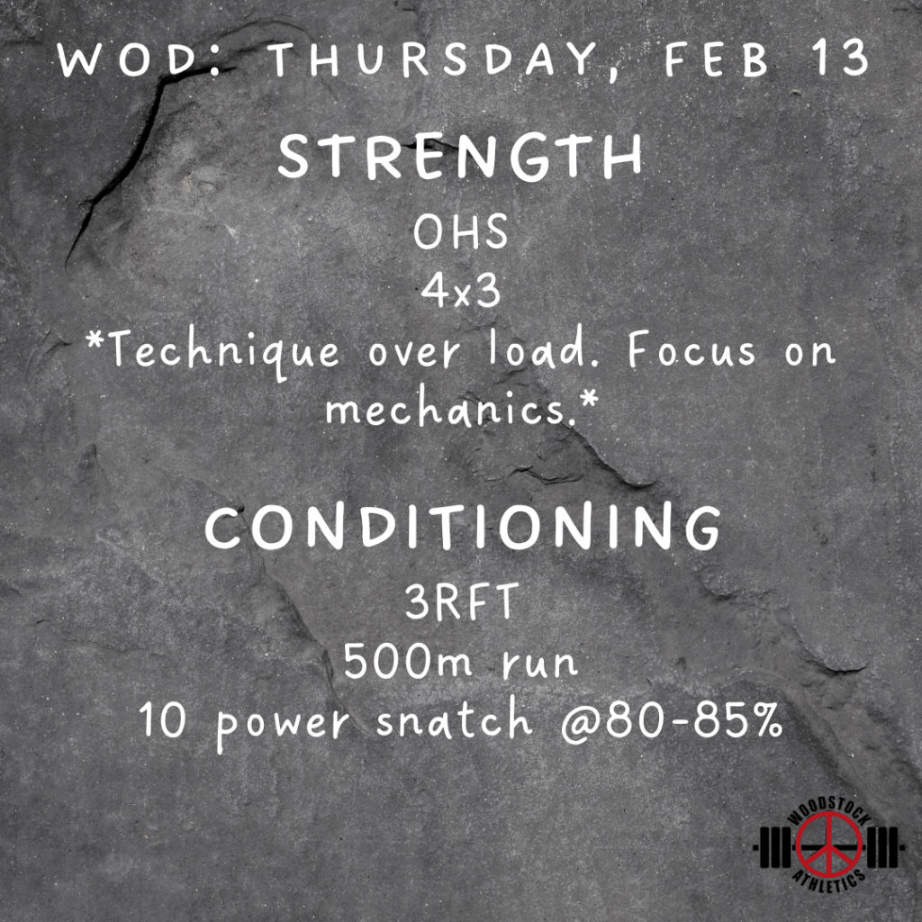 WOD & Barbell Club: Thursday, Feb 13 Posted bySteph VermeychukFebruary 13, 2025February 8, 2025Posted inWorkout of the Day Share this: Click to share on X (Opens in new window) X Click to share on Facebook (Opens in new window) Facebook Like Loading... Related