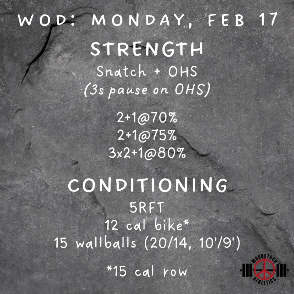 WOD: Monday, February 17 Posted bySteph VermeychukFebruary 17, 2025February 16, 2025Posted inUncategorized Share this: Click to share on X (Opens in new window) X Click to share on Facebook (Opens in new window) Facebook Like Loading... Related