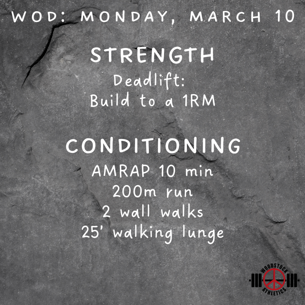 WOD: Monday, March 10 Posted bySteph VermeychukMarch 10, 2025March 9, 2025Posted inWorkout of the Day Share this: Click to share on X (Opens in new window) X Click to share on Facebook (Opens in new window) Facebook Like Loading... Related