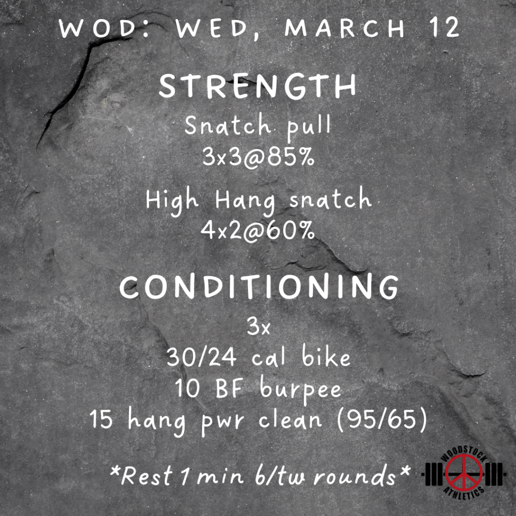 WOD: Wednesday, March 12 Posted bySteph VermeychukMarch 12, 2025March 9, 2025Posted inWorkout of the Day Share this: Click to share on X (Opens in new window) X Click to share on Facebook (Opens in new window) Facebook Like Loading... Related
