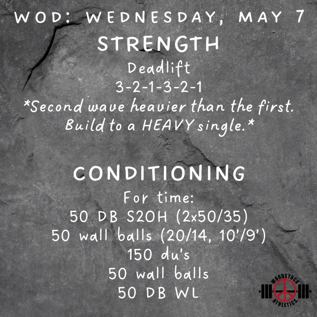 WOD: Wednesday, May 7 Posted bySteph VermeychukMay 7, 2025May 4, 2025Posted inWorkout of the Day Share this: Click to share on X (Opens in new window) X Click to share on Facebook (Opens in new window) Facebook Like Loading... Related