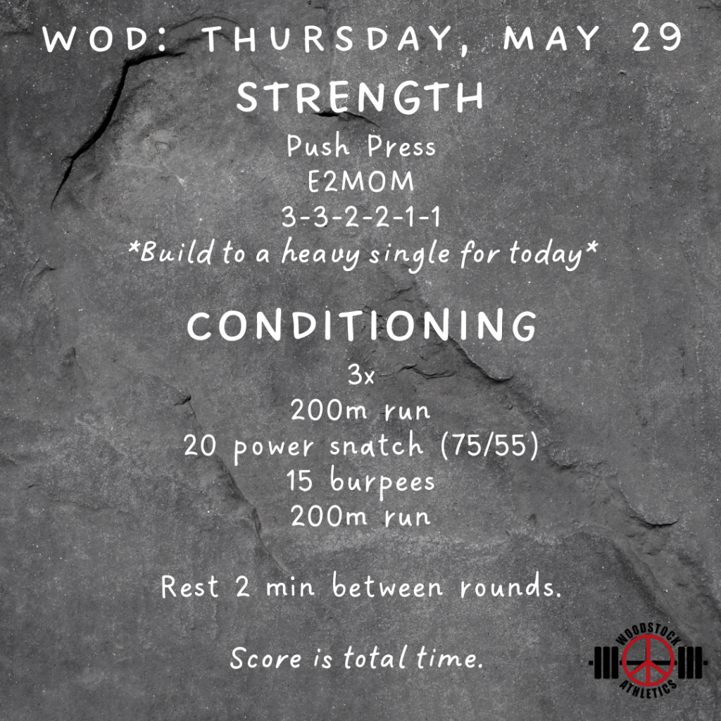 WOD & Barbell Club: Thursday, May 29 Posted bySteph VermeychukMay 29, 2025May 25, 2025Posted inWorkout of the Day Share this: Click to share on X (Opens in new window) X Click to share on Facebook (Opens in new window) Facebook Like Loading... Related