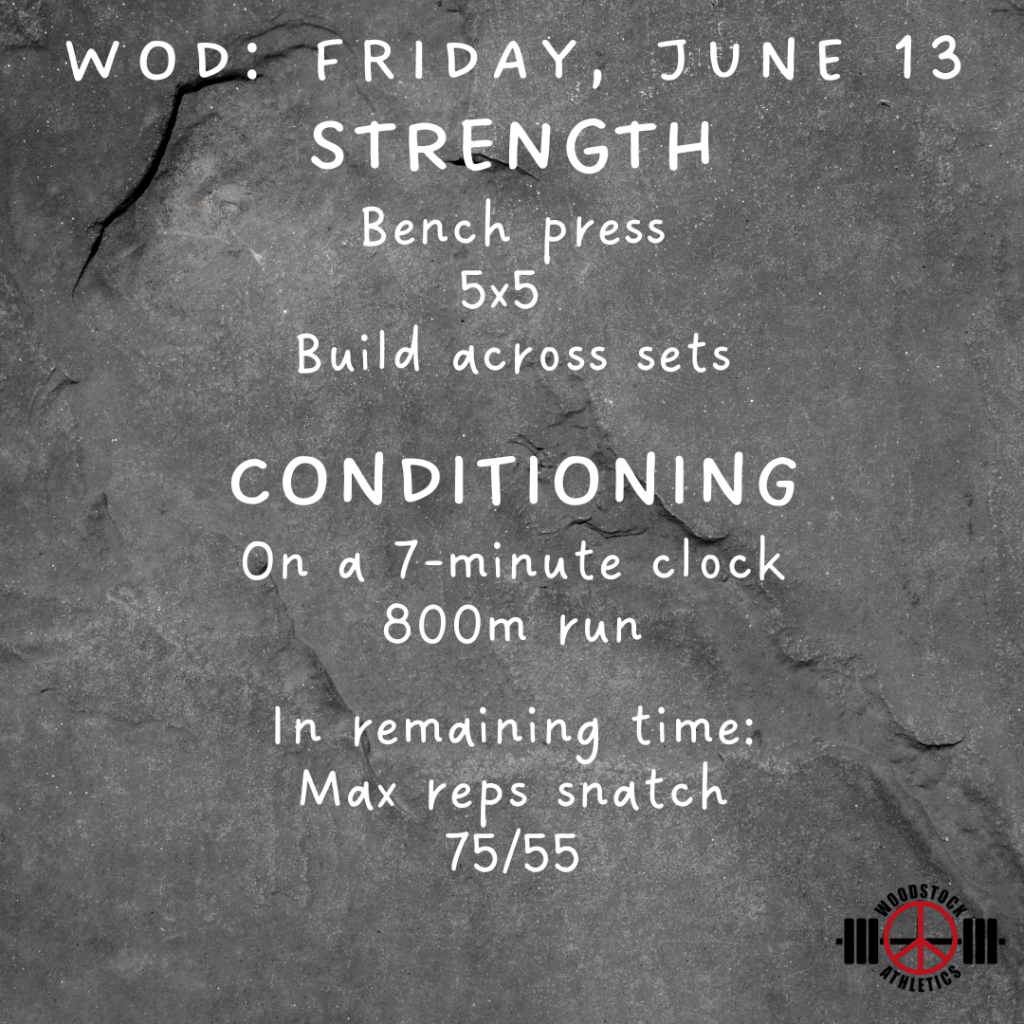 WOD: Friday, June 13 Posted bySteph VermeychukJune 13, 2025June 8, 2025Posted inWorkout of the Day Share this: Click to share on X (Opens in new window) X Click to share on Facebook (Opens in new window) Facebook Like Loading... Related