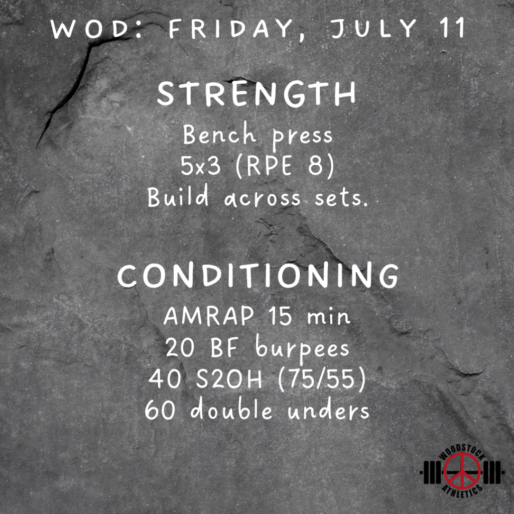 WOD: Friday, July 11 Posted bySteph VermeychukJuly 11, 2025July 6, 2025Posted inWorkout of the Day Share this: Click to share on X (Opens in new window) X Click to share on Facebook (Opens in new window) Facebook Like Loading... Related