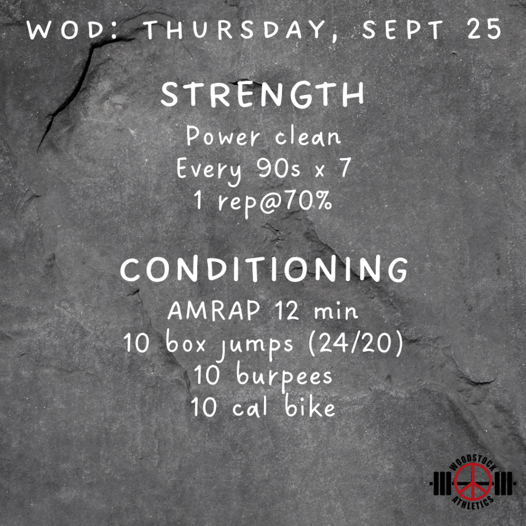 WOD: Thursday, September 25 Posted bySteph VermeychukSeptember 25, 2025September 21, 2025Posted inWorkout of the Day Share this: Click to share on X (Opens in new window) X Click to share on Facebook (Opens in new window) Facebook Like Loading... Related