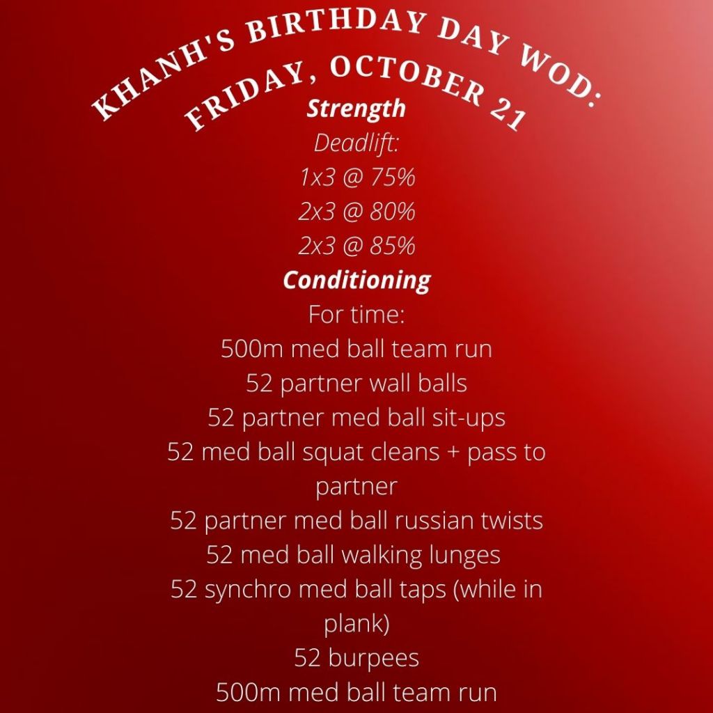 Khanh’s Birthday WOD: Friday, October 21