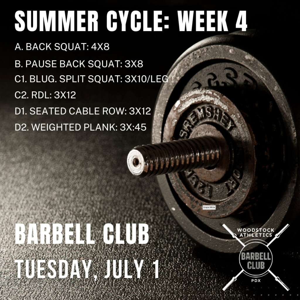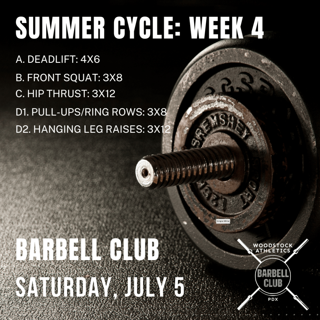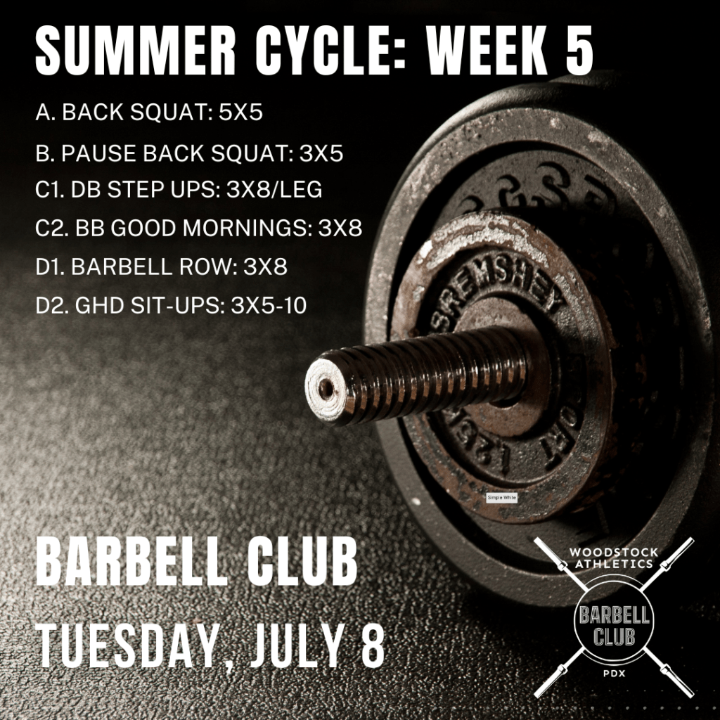 BARBELL CLUB is entering into the next phase of this training cycle (weeks 5-8). We’ll be ramping up the intensity and focusing on increasing maximal strength.