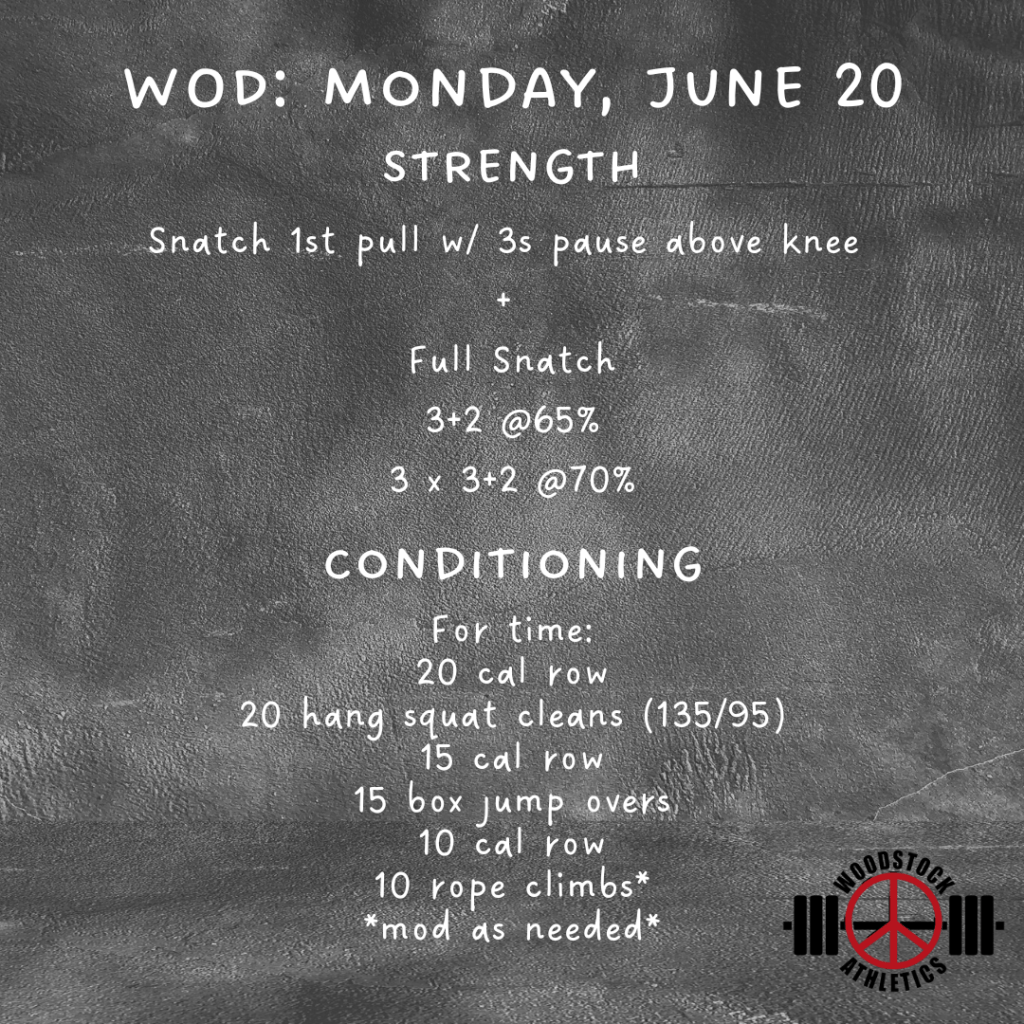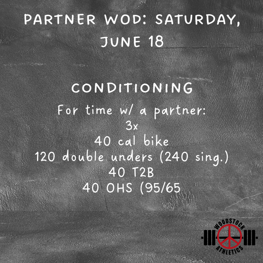 This means that you need to bring all your gear everyday (shoes, jump rope, etc…) so that you are prepared for whatever is on the white board.