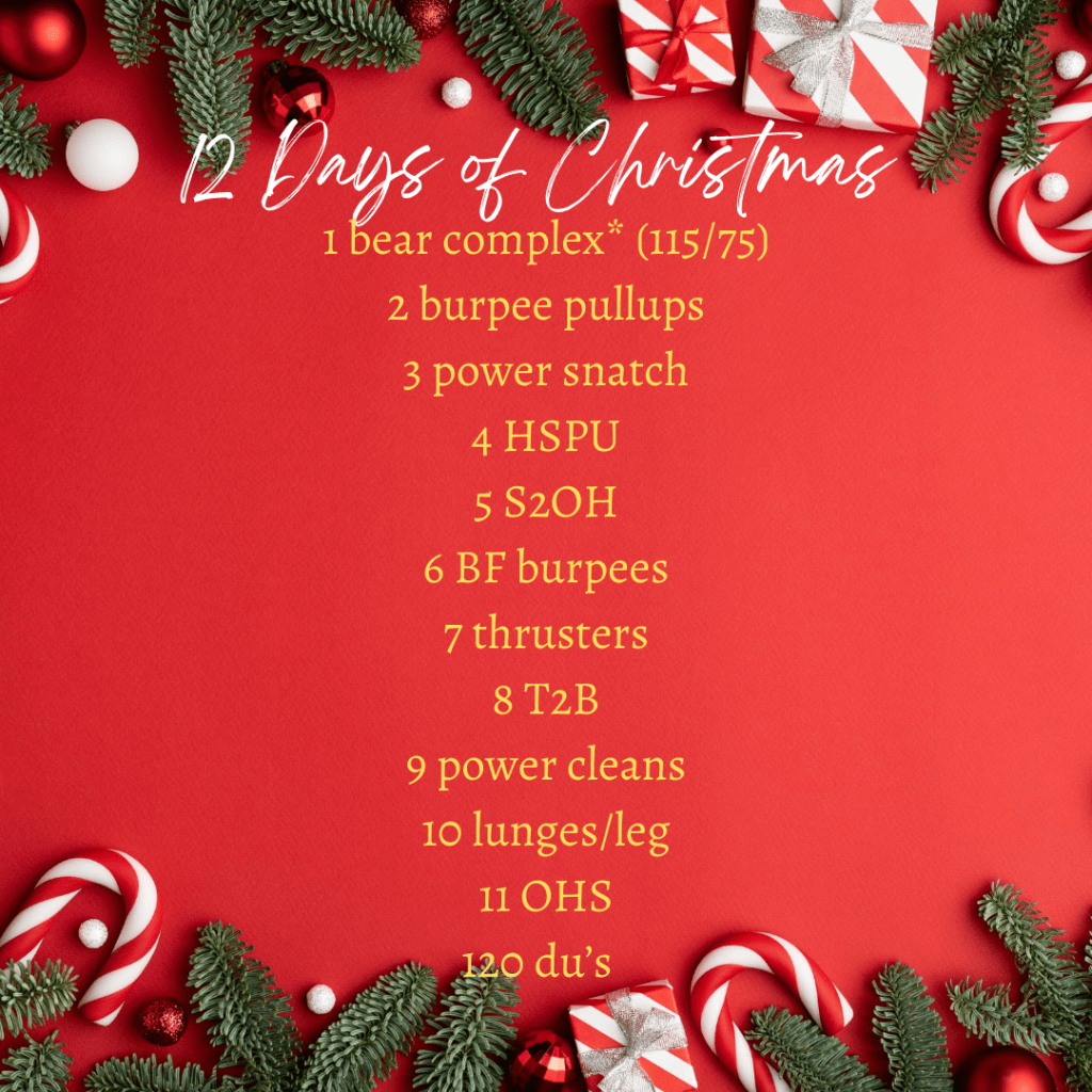 The 12 Days of Christmas workout is done just like the song is sung.