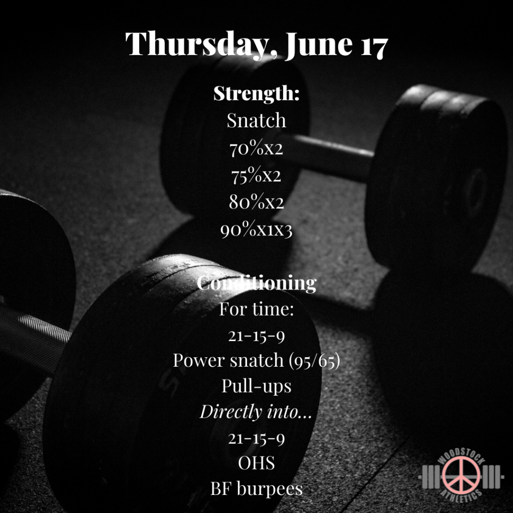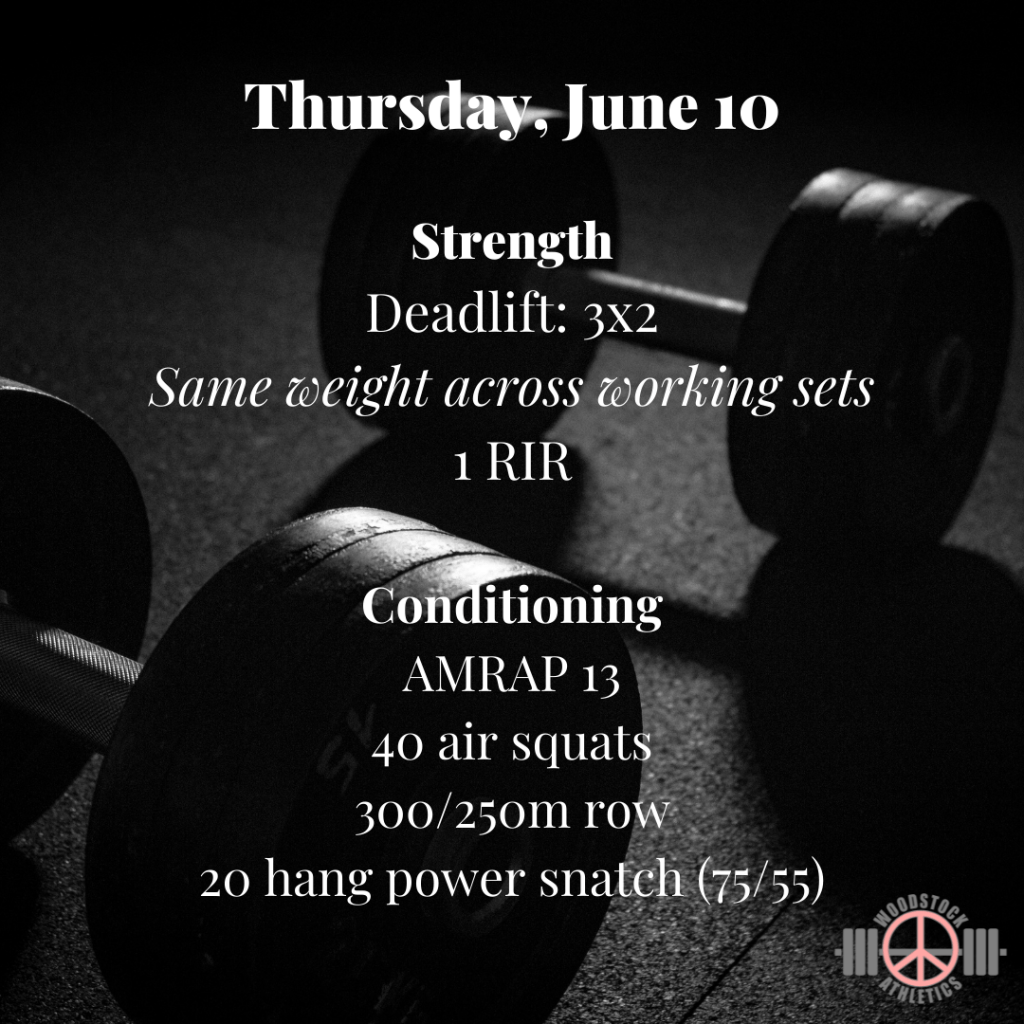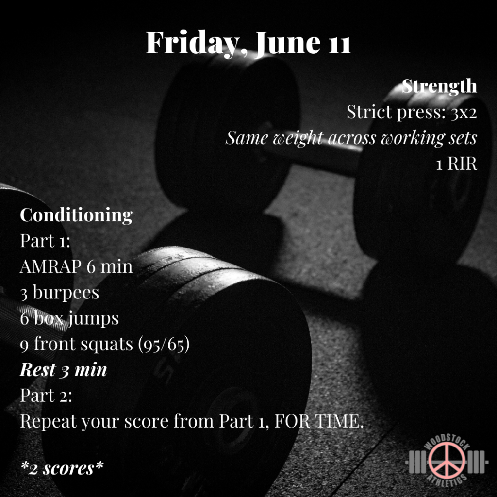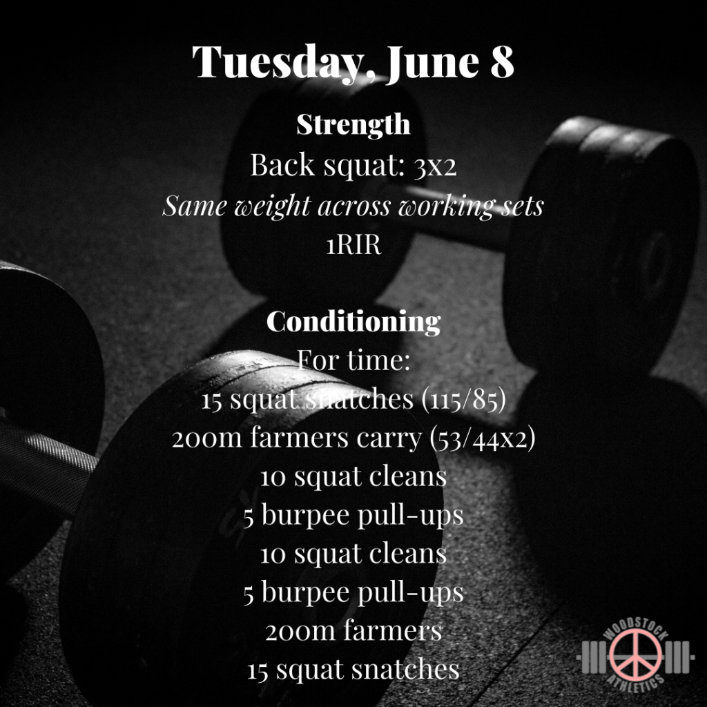 We are in the last heavy week of our strength cycle. Working to some heavy triples this week. Let’s get it!