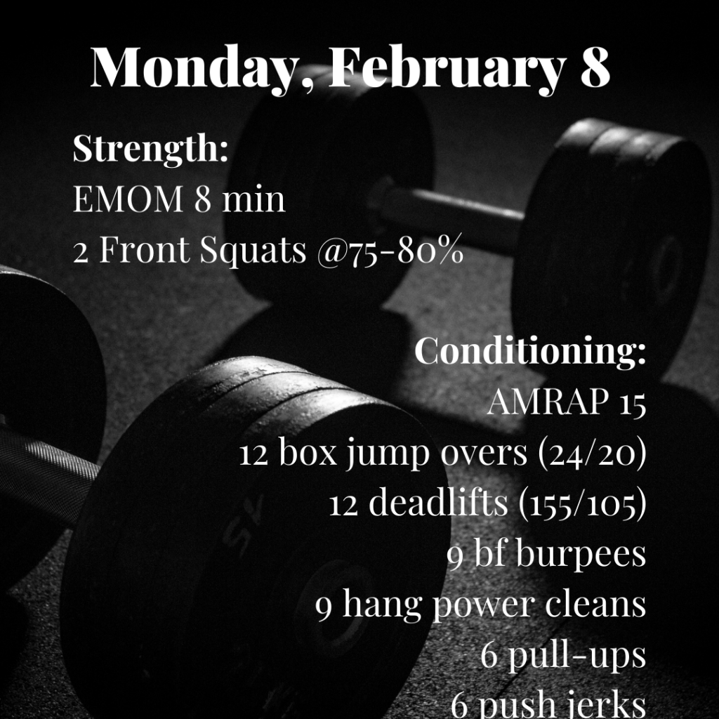 At home and in gym WODS for Monday, February 8.