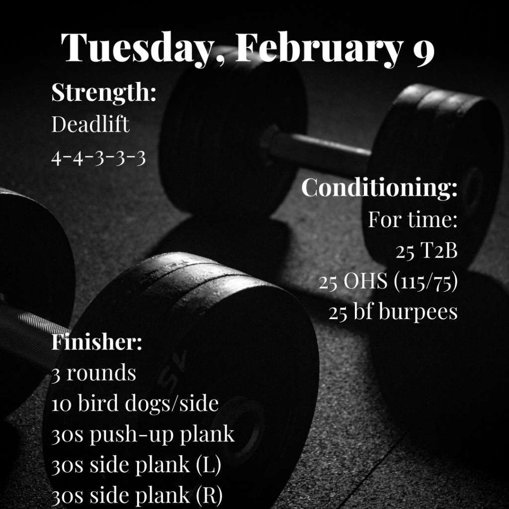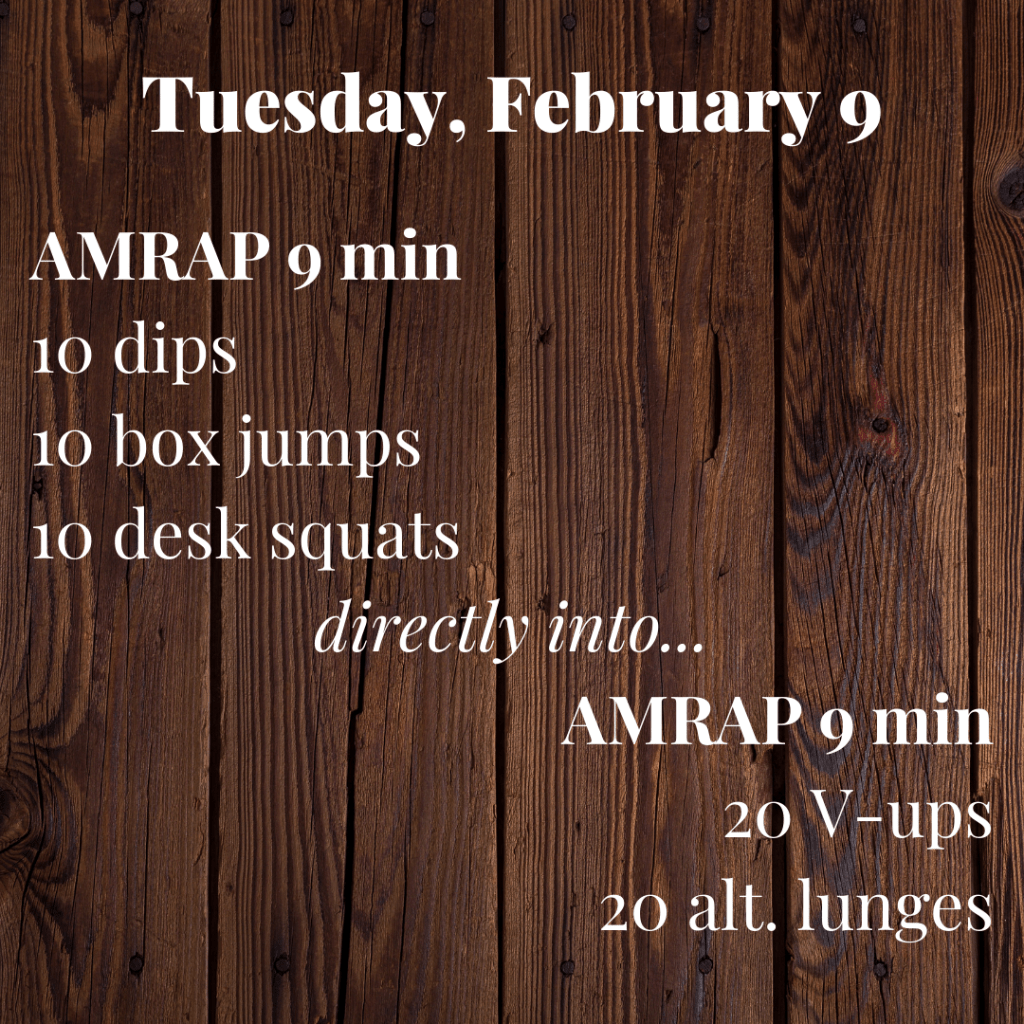 At home and in gym WODS for Tuesday, February 9.