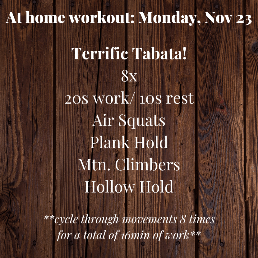Happy Monday, everyone! Here’s a workout that you can do in only 16 minutes today. You’ll feel this one in your legs and core. Good luck!