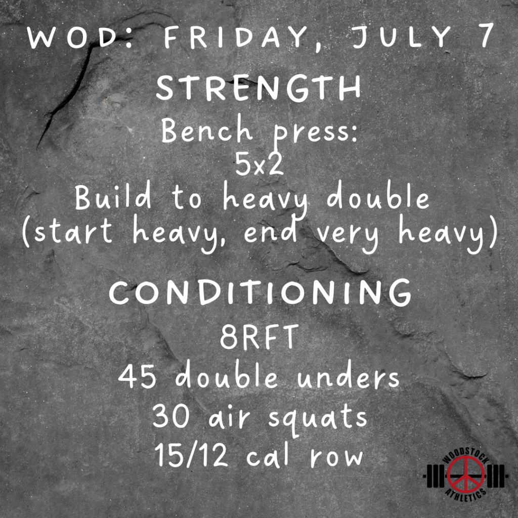 There will be NO GROUP CLASS on Saturday, July 29, and we will start lifting at 11am. Feel free to get there early to start warming up.